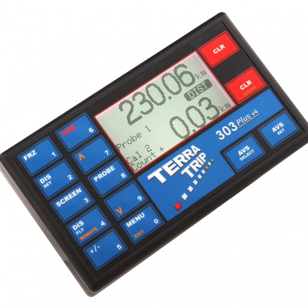 Terratrip 303 Plus V4 este modelul de tripmeter folosit la raliuri si mai putin in off-road; are toate functiile necesare si un display multifunctional. Informatiile sunt primite prin senzori (de cardan, de cablu kilometraj sau electronic); nu primeste informatii prin GPS (ca modelele Geotrip GPS).