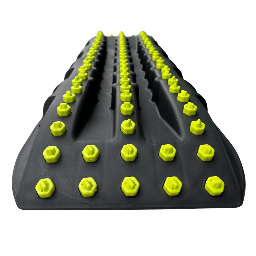 Ornamentele verzi îmbunătățesc vizibilitatea rampelor în teren, fiind utile mai ales în condiții de lumină redusă sau noroi. Construcția este gândită pentru utilizare repetată în off-road, overlanding sau cu vehicule de tip pick-up, iar dimensiunile permit o manipulare și depozitare relativ ușoară.