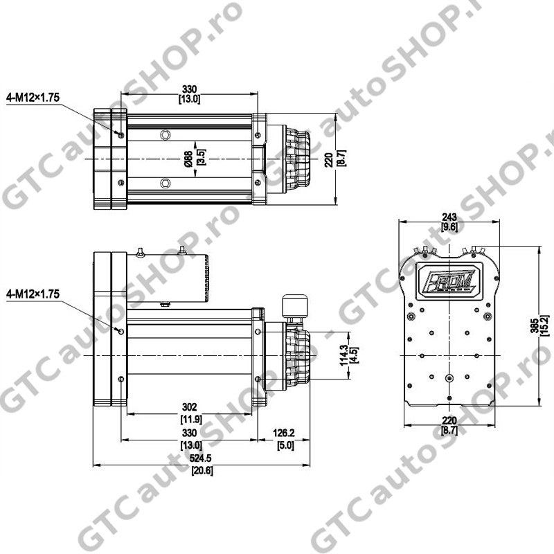 Troliu de competitii FROM 12000lbs, cu 2 motoare de 7CP, ambreiaj tip free-spool, cablu sintetic 50metri x 11mm, 2 telecomenzi wirelless.