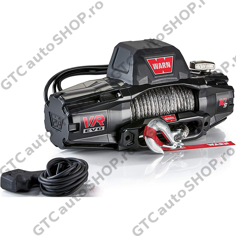 Warn VR EVO 10S este livrat cu cablu sintetic de 9.5 mm, dotat cu carlig. Fanta de aluminiu are un design deosebit si o greutate redusa.