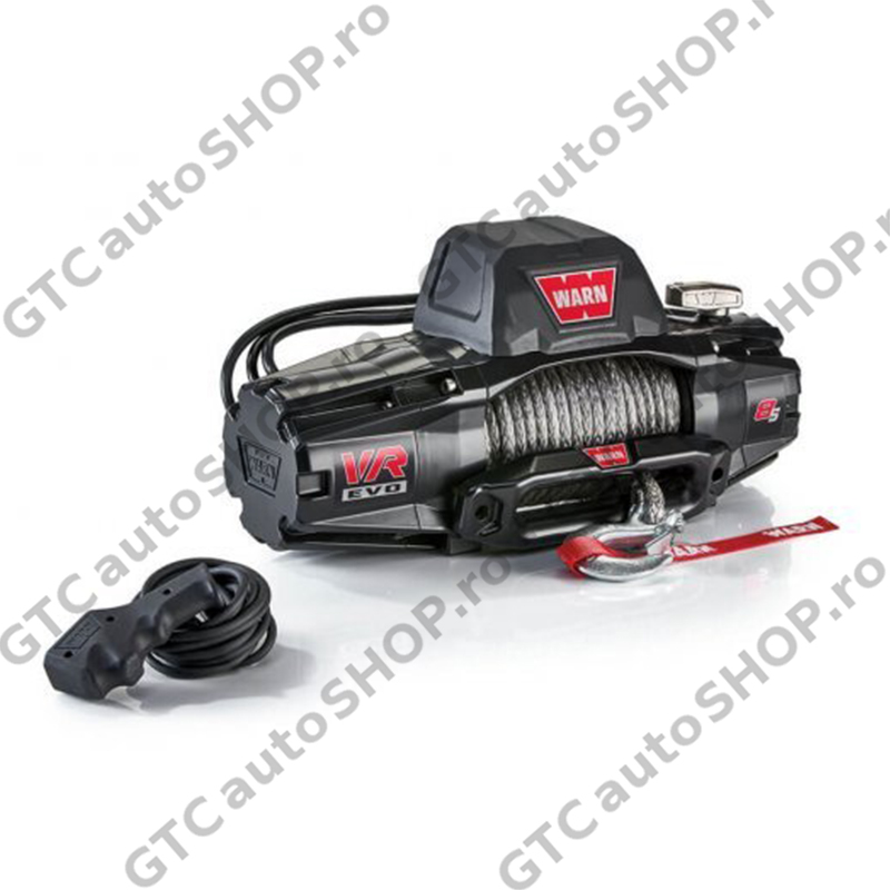 Warn VR EVO 8S este livrat cu cablu sintetic de 9.5 mm, dotat cu carlig. Fanta de aluminiu are un design deosebit si o greutate redusa.