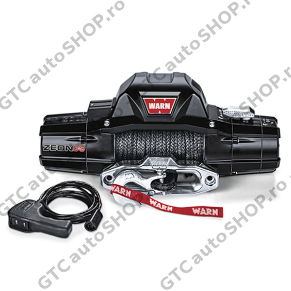 Zeon 8S este livrat cu cablu sintetic Warn Spydura de 9.5 mm, dotat cu protectie termica pe portiunea de contact cu tamburul si protectie la contactul cu copacul. Fanta de aluminiu are un design deosebit si o greutate foarte mica.