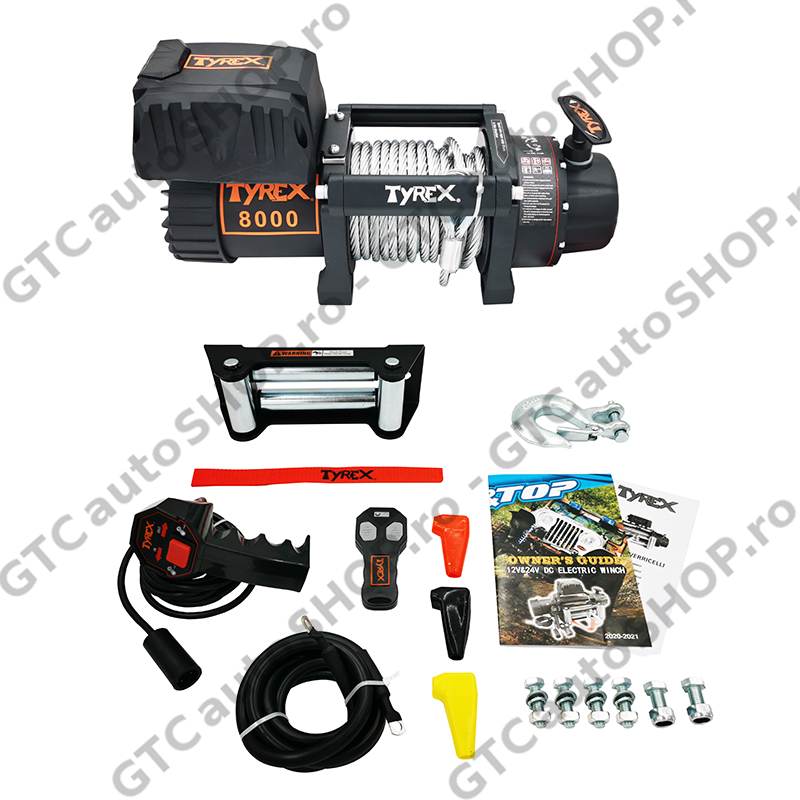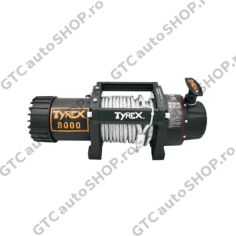 Troliul Tyrex de 8000 lbs este de tip Compact, cu dimensiune si greutate reduse - ideal pentru montare la masini de gabarit mic, gen Suzuki, Duster, Daihatsu, SSV si SUV-uri de talie mica.